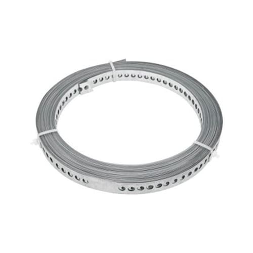 Acabamento da fita de aço: Zincado; Comprimento da fita de aço: 10,0m; Largura da fita de aço: 19,0; Espessura da fita de aço: 0,4mm; Diâmetro do furo da fita perfurada: 7,0mm; Espaçamento entre furos da fita de aço perfurada: 4mm; Força máxima a tração Kgf : 154 kgf. Ean: 7893946500504