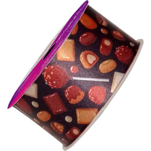 Fita De Cetim Decorada 38Mm Com 10 Metros Marrom Com Doces