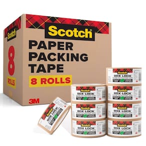 Scotch Fita de embalagem de papel Box Lock, marrom kraft, fita de papel kraft de aderência extrema que recicla com a caixa, fita de envio, 4,8 cm x 25 m, 8 rolos de fita