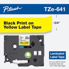 Brother Fita P-Touch TZE-641 genuína, fita P-Touch laminada padrão de 1,8 cm, preta em amarelo, para uso interno ou externo, resistente à água, 8 m, pacote único - ETIQUETAS MAIS DURÁVEIS DISPONÍVEIS PARA FABRICANTES DE ETIQUETAS P-TOUCH: Para uso com uma ampla variedade de fabricantes de etiquetas P-touch; crie facilmente etiquetas personalizadas com aparência ; projetadas para adesão duradoura, legibilidade e durabilidade máxima - Rigorosamente testada em uma variedade de ambientes: a escolha ideal para uso a longo prazo em condições internas/externas robustas; resistente ao desbotamento da luz solar, abrasão, água e muitos produtos químicos diferentes; resistente a faixas de temperatura de congelamento a fervura - LAMINAÇÃO PODEROSA DE 7 CAMADAS: A tecnologia patenteada reforça e protege a superfície das etiquetas; fina e extremamente durável; o texto é impresso entre camadas para máxima proteção contra ilegibilidade e desgaste - Afeta com segurança a várias superfícies: a adesão superior resiste ao uso rigoroso; as etiquetas permanecem colocadas mesmo na máquina de lavar louça ou micro-ondas; ideal para superfícies lisas ou texturizadas - Opções de trabalho duro: ampla variedade versátil de cores, tamanhos e estilos, além de variantes premium e especiais; código de barras, criação de código QR; ideal em espaços de trabalho, espaços de armazenamento, espaços compartilhados; é fácil encontrar a etiqueta certa para qualquer trabalho