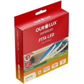 Fita De Led 5 Metros 10w/m 12 Volts Ip20 3000k - 05761- Ourolux Fita Led 5m 10w/m Ip20 12v 3000k Ourolux Fita de Led 5 Metros 10W/M 12 Volts IP20 3000K - 05761- OUROLUX Descrição: Apresentamos a Fita de LED Ourolux, a solução ideal para iluminação decorativa e funcional em qualquer ambiente. Este rolo completo com 5 metros de extensão é composto por tecnologia SMD de alta eficiência, operando em baixa tensão de 12 Volts para maior segurança e economia. Com uma potência de 10W por metro e um fluxo luminoso de 1.300 lúmens por metro, ela garante um ótimo desempenho luminoso. Seu acabamento é flexível e autoadesivo, pronto para instalação imediata. A cor escolhida é o Branco Morno (3000K), que emite uma luz amarela suave e acolhedora, perfeita para criar atmosferas convidativas. Possui Grau de Proteção IP20, indicada para uso em ambientes internos e secos.