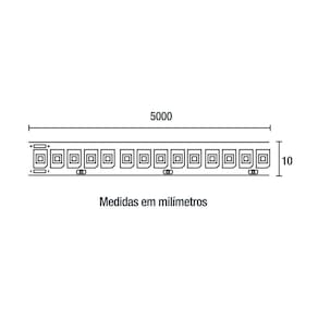 Garantia: 1 ano junto ao fabricante; Referência: 40082000 - 2700K, 40086000 - 6500K, 40084000 - 4100K; Grau de Proteção: IP 20; Fluxo Luminoso: 1450lm/m; IRC (Índice de Reprodução de Cor): = 70; Largura da Fita Led: 10 mm; Quantidade de Leds: 240 LEDs/m; Unidade de Corte: a cada 50mm; Vida Útil: 15.000 horas; Voltagem de Saída: 12V; Comprimento: 5 metros; Local de Uso: Interno; Itens Inclusos: 1 Fita Led;