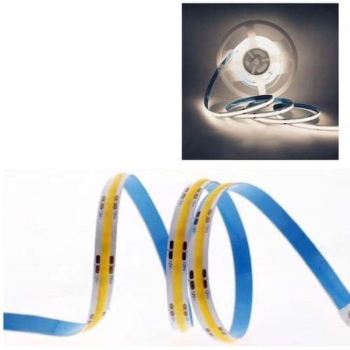 A versão COB (Chip on Board) de fitas LED identifica produtos onde o dispositivo LED é contínuo, isso é, ao invés de vários pontos de iluminação como em fitas comum, ele apresenta um dispositivo LED continuo atraves de todo o comprimento, permitindo uma maior qualidade de iluminaçao.
