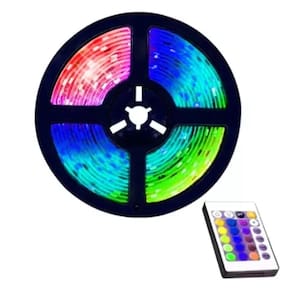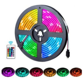 Especificações:- Tensão: 12v;- Potência: 4,8W;- Material: Silicone;- Voltagem: 110V-220V- Comprimento: 5m.- 1 Rolo com 5 Metros Fita Led RGB- 1 Controle Remoto- Sem Fonte