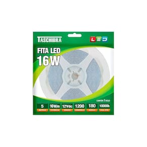 Fita De Led Taschibra Com 5 Metros 180 Leds/m 16w 12v 6500k Luz Branca 14040244-16 Especificações Gerais do Produto:Dimensões AxLxP (mm): 8x5000Garantia: 90 dias junto ao fabricanteNome complemento: Não acompanha fonteGrau de Proteção: IP 20Fluxo Luminoso: 1200 lm/mIRC (Índice de Reprodução de Cor): 70Largura da Fita Led: 8 mmPotência: 16W/mQuantidade de Leds: 180 LEDs/mTipo de Led: SMDUnidade de Corte: 1,66cmVida Útil: 10.000 horasComprimento: 5 metrosLocal de Uso: InternoModelo/Tecnologia: LEDTensão: 12VdcÂngulo: 120Acompanha Fonte: Não O que vem na caixa:1 Fita Led