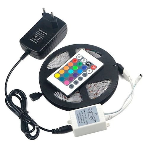 Fita de luz LED 5m 300 RGB multicolorida com controle remoto