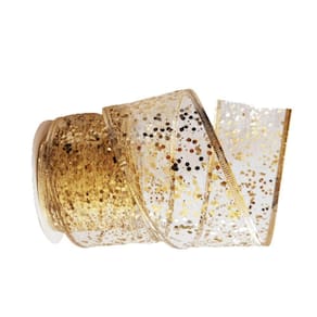 Fita Decorativa de Natal em tecido paetê ;dourado com borda aramada dourada, Rolo com ;9,14m de comprimento X 6.50cm de largura.