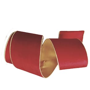 Fita Decorativa Natal aramada em veludo vermelho com fios dourados, Rolo com 9,14m de comprimento X 6.50cm de largura.