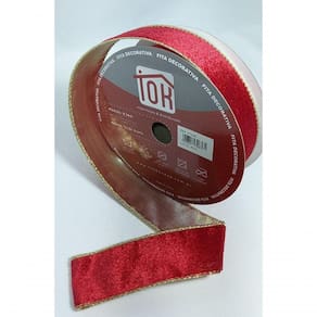 - 1 - Fita Decorativa Vermelha Veludo Lisa Com Borda Dourada