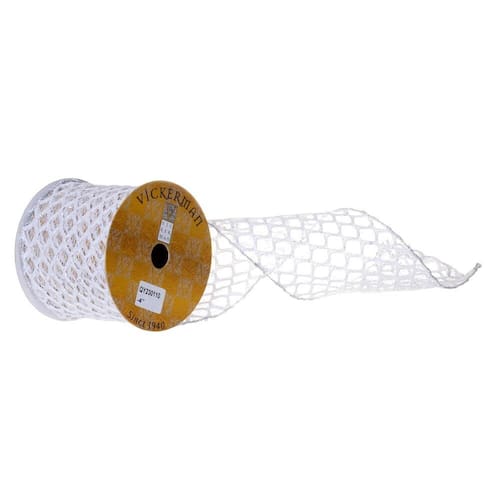 Fita com fio de rede de lantejoulas com glitter branco Vickerman de 4 polegadas x 10 jardas.