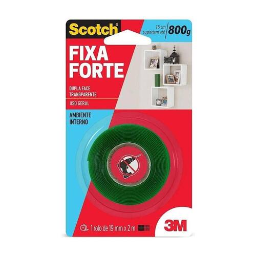 A Fita Dupla Face 3M Scotch Fixa Forte Transparente é praticamente invisível e proporciona fixação permanente de qualidade profissional. Sua aplicação limpa e sem barulho dispensa o uso de pregos e parafusos. É perfeita para fixação discreta de objetos em qualquer superfície lisa, como paredes, acrílicos, vidros, plásticos, metais, madeiras com verniz ou pintadas e revestimentos (que não recebam umidade), em ambientes internos. Não amarela com o passar do tempo.