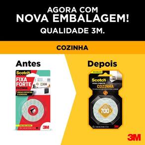 A Fita Dupla Face 3M Scotch Fixa Forte Cozinha é a mais indicada para fixar de forma permanente objetos decorativos e acessórios de cozinha, devido a sua resistência a gordura do ambiente.