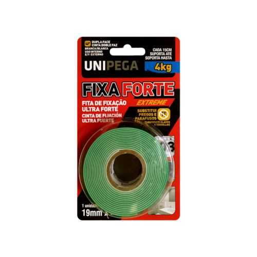 Bateu aquela vontade de pendurar um quadro, espelho, ou mesmo renovar a decoração daquele espaço interno? Furadeira, sujeira e furos desnecessários na parede são soluções do passado! A fita Dupla Face Fixa Forte Extreme Unipega permite a fixação objetos de até 4kg com a maior praticidade. Espelhos, nichos, quadros, porta-chaves, canaletas e muitas outras opções. Aplicou, fixou! Fácil assim.