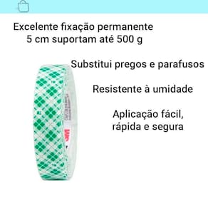 Especificações A fita dupla face é uma ótima alternativa ao uso de pregos e parafusos para fixar objetos nas paredes. Também é uma solução muito prática para pessoas que precisam pendurar coisas em áreas molhadas da casa, como o banheiro. A fita dupla face pode ser usada para muitos projetos diferentes e está disponível em muitas variedades de larguras e comprimentos.