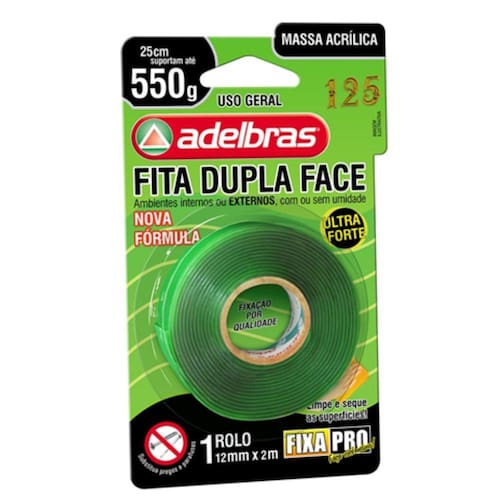 Fita Dupla Face Massa Acrilica Fixa Pro 12mm x 2m Adelbras