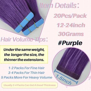 Extensões de cabelo humano com fita roxa 35,5 cm fita Remy invisível em extensões de cabelo liso colorido para mulheres modernas - Fita reutilizável e invisível: Estas extensões de cabelo humano vêm com fita adesiva dupla face, nunca escorregam ou se perdem facilmente. Pode ser reaproveitado por mais de 3 meses. Evite produtos oleosos e altas temperaturas perto da fita adesiva - Material premium de versatilidade: extensões de cabelo humano 100% Remy, macio e sem emaranhados, pode ser tingido, enrolado, alisado e cortado dos seus sonhos. Nunca perca nutrição, nunca perca o brilho - Especificação do cabelo: 30,5 cm-61 cm, 30G, 20 peças/pacote. Nossas extensões de cabelo roxo são leves e confortáveis de usar, adequadas para cabelos finos ou finos. 1 pacote para destaque, 2-3 pacotes para volume e 4-5 pacotes para uma cabeça inteira - Economia de tempo: Estas extensões de cabelo leves com fita são fáceis de instalar sem ferramentas especiais por você mesmo, alguns minutos para obter um novo estilo, sem necessidade de instalação . 2025, é hora de liberar seu tempo de passos excessivos de cabelo! - Homem pós-venda: Czrleaty apoia as mulheres a buscarem suas próprias. Temos uma equipe pós-venda, se você tiver alguma dúvida sobre nossas extensões de cabelo humano com fita adesiva, resolveremos a tempo