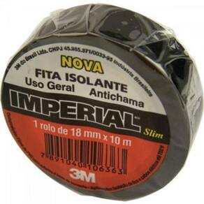 Fita Isolante 18mm x 20m IMPERIAL SLIM Preta 3M - DEZ / 10 A Fita Isolante IMPERIAL SLIM da 3M é extremamente versátil, de grande utilidade nos mais variados tipos de isolamentos e proteções elétricas em residências, eletrodomésticos e reparos em geral.
