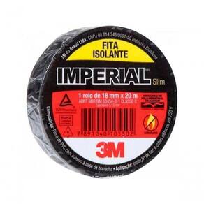 A Fita Isolante é extremamente versátil, de grande utilidade nos mais variados tipos de isolamentos e proteções elétricas em residências, eletrodomésticos e reparos em geral. Aplicações e Vantagens: - Pequenos reparos elétricos; - Conserto de eletrodomésticos, aparelhos eletrônicos,etc; - Reforço em cabos de ferramentas; - Manutenções provisórias; - Reduz vulnerabilidade. Tipo:Isolante Cor:Preta Dimensões:18mm x 20m Pesquisa:fita|isolante|anti|chama|18|mm|20m|imperial|slim|3m|20|m - É um produto antichamas à base de PVC; - Possui extrema conformabilidade às mais variadas superfícies; - Especialmente construída para os mais diversos tipos de isolamentos elétricos; - Possui bom poder de adesão; - Boa plasticidade e alongamento.