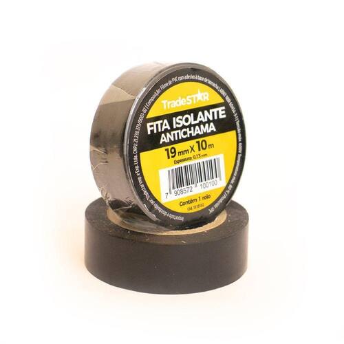 Largura: 19 mm Comprimento: 10 m Cor: Preto Material: PVC Resistência à tração: 18 N/cm Resistência à temperatura: 80C Isolação elétrica: até 600V