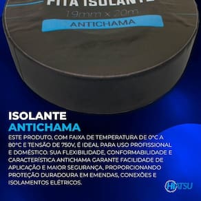 - - Fita Isolante Antichama 0,13mm x 19mm x 20m cor preta Hiatsu