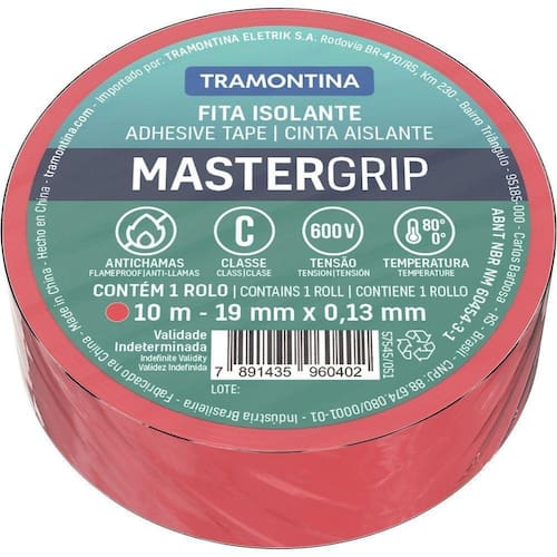 Com a Fita Isolante Classe C 0,13x19 mm Tramontina Vermelha 10 m além de obter uma conexão elétrica segura e de qualidade você pode identificar e sinalizar o condutor elétrico. Sua fabricação com material antichamas de excelente elasticidade e resistência proporciona a isolação perfeita dos fios sem riscos de ocorrerem choques elétricos. Ela é muito fácil de aplicar e é ideal para uma boa conexão elétrica!