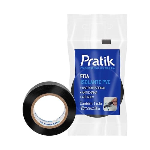 Características Principais do Produto: Adesivo: Borrachas e Resinas Sintéticas Cor: Preto Marca: Pratik Tamanho: 19mmx10m Substrato: Filme de Policloreto de Vinila (PVC)