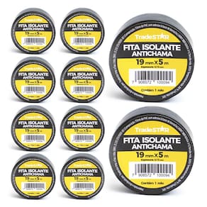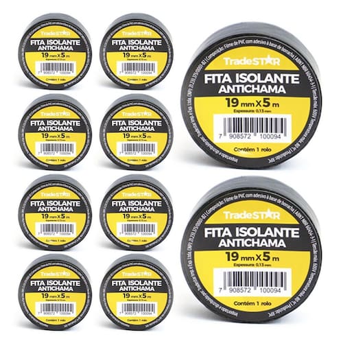 Não perca tempo e adquira agora mesmo o Kit 10 Rolos Fita Isolante Antichama 19mm x 5 Metros Preta, um produto de qualidade que irá facilitar seus reparos elétricos! Marca: Tradestar