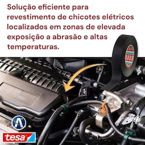 Fita isolante e revestimento de chicotes automotivo, de tecido pet resistente a abrasão e alta temperatura. Produto tesa cod: 51025-00025-10, homologado por todas as montadoras de veiculo, certificação de qualidade iatf 16949:2016 e iso 9001:2015 conforme cadeia automotiva