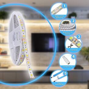 - Tensão: 12V - Potência: 8w por metro - Quantidade de Leds: 300 leds em 5 metros ou 60 leds por metro - Luminosidade: 720 Lúmens por metro - Vida Útil: 50.000 h - Temperatura de Trabalho: -20 a 50°C - Índice de proteção: IP65 - Cor: Branco Frio - Temperatura de Funcionamento: -20 a 50°C - Ângulo de Iluminação: 120° - Modelo SMD: 5050 - Resistência a Água: Sim - Comprimento: 5 m - Espessura: 0,25 cm - Largura: 0,9 cm - Material: Silicone