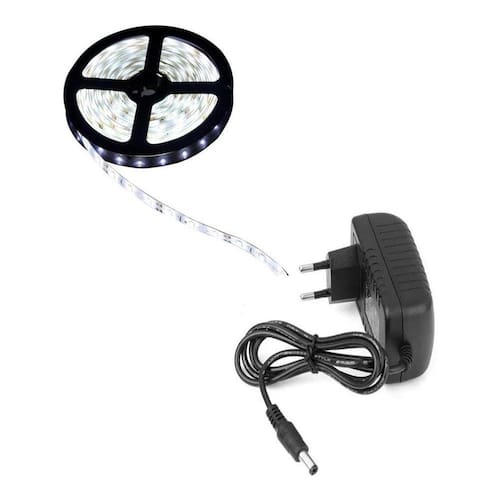 - Alimentação: Fonte 12v 5A (Fonte inclusa) - Tensão: 12V - Potência: 8w por metro - Quantidade de Leds: 300 leds em 5 metros ou 60 leds por metro - Luminosidade: 720 Lúmens por metro - Vida Útil: 50.000 h - Temperatura de Trabalho: -20 a 50°C - Índice de proteção: IP65 - Cor: Branco Frio - Temperatura de Funcionamento: -20 a 50°C - Ângulo de Iluminação: 120° - Modelo SMD: 5050 - Resistência a Água: Sim - Comprimento: 5 m - Espessura: 0,25 cm - Largura: 0,9 cm - Material: Silicone