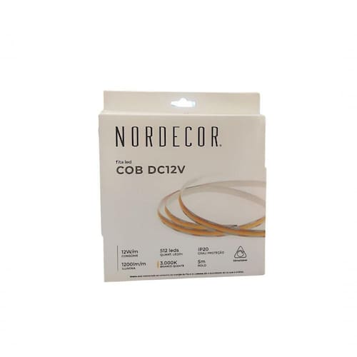 Fita LED IP20 12W/m 12V COB 1200lm/m 5mt Nordecor 3000K