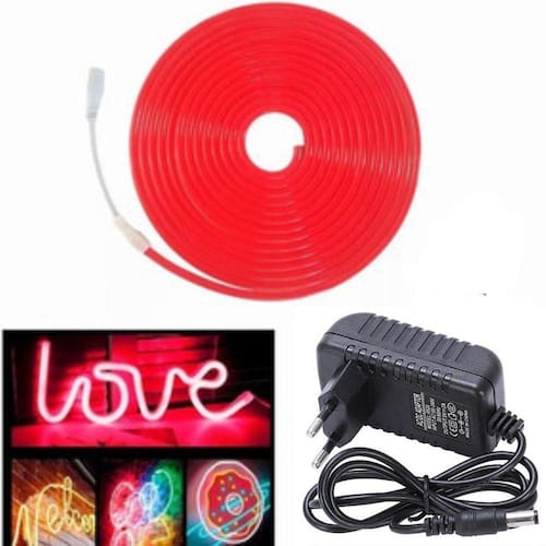 - Alimentação: Fonte 12v 5A (Fonte inclusa) - Tensão: 12v - Índice de proteção: IP65 - Quantidade de LEDS: 120 por metro - Lúmens: 160/MT ou 800/5MT - Cor: Vermelho - Medida para Corte: 2,5 cm - Ângulo de Iluminação: 90° - Resistência a Água: Sim - Comprimento: 5 m - Espessura: 6 mm - Largura: 12 mm - Material: Silicone