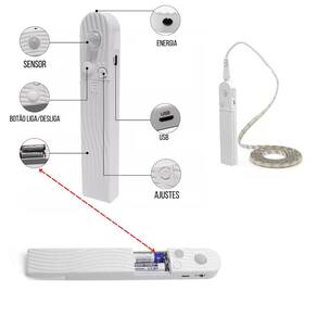 Fita de Led SMD 2835 Flexível IP65 Com Sensor De Presença De 3 Metros Com 3 Modos Funciona A Pilhas Ou Com Fonte De 5V