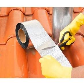 Fita autoadesiva multiuso à base de asfalto modificado, autoprotegida com filme de alumínio que permite sua exposição a intempéries e aos raios solares, sendo de fácil aplicação, na qual proporcionam medidas imediatas para solucionar problemas de gotejamento e vedações.