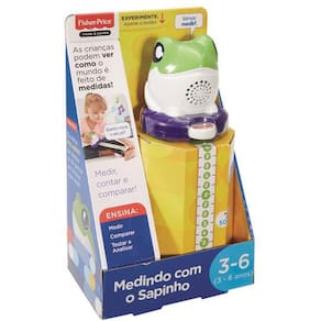 Olha o sapinho! Este sapo da Fisher-Price® ganha vida com conteúdo de áudio que incentiva crianças a explorarem o mundo ao seu redor, e contar de um até 50! Com uma fita métrica retrátil, as crianças em idade pré-escolar começam a entender e comparar diferentes objetos no ambiente, ganhando contexto para entender medidas.