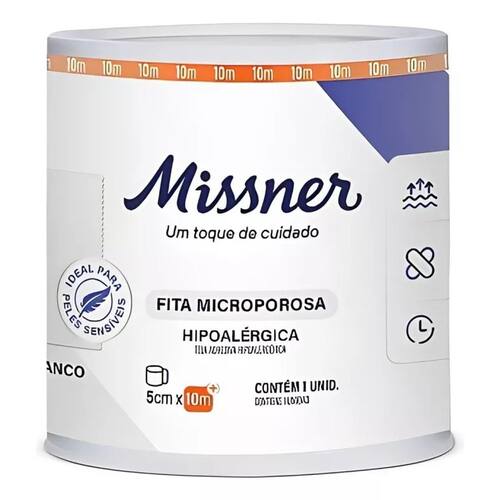 Excelente opção para profissionais e pacientes que buscam conforto, qualidade e segurança, pois a Fita Microporosa da Missner hipoalérgica, composta de não tecido a base de fibras de viscose com adesivo acrílico. Isento de látex.
