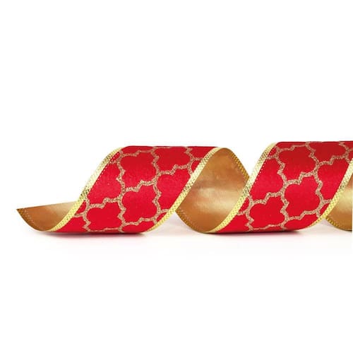 Fita Decorativa Vermelha C/ Detalhes Ouro 6,3cm C/9,14m 1014330