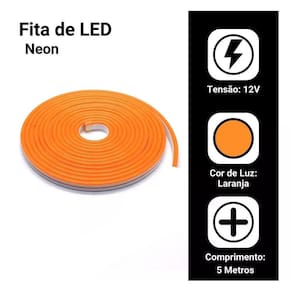 Fita Neon Led 5m 12v Corte 2,5cm Flexivel Alto Brilho Luz - Cor: Laranja