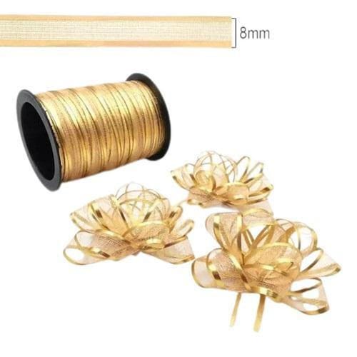 Fita Organza Metalizada Princess 8mm com 10 metros Cor: Dourado Fita Organza Metalizada Princess 8mm com 10 metros Fita organza metalizada com brilho radiante, são as fitas perfeita para confecção de laços, tiaras, presilhas, decoração de ambientes, artesanatos como flores e muito mais. Ficha Técnica - Tamanho: 8mm x 9,14m- Composição: 50% Poliéster 50% PP
