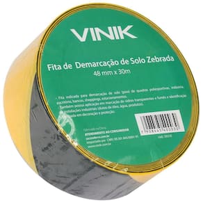 ESPECIFICAÇÕES: Cor: zebrada (amarela + preta) Largura x comprimento: 48mm x 30 metros Costado de PVC revestido com borracha adesiva Contém 1 rolo.