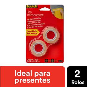 Fita Scotch transparente com 2 rolos - 12mmx20m - 3M