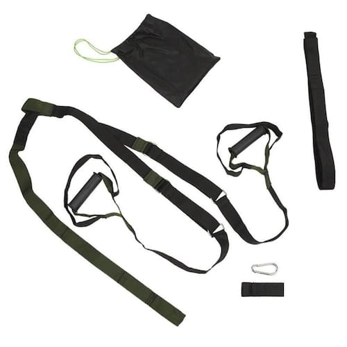Itens Inclusos: 1 Fita de Suspensão + 1 Arcorador de porta + 1 Mosquetão 70 mm + 1 Bolsa para transporte + 1 Fita extensora de 2 metros.