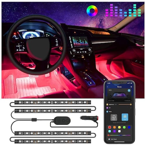 Modo DIY Criativo Escolha entre mais de 16 milhões de cores disponíveis ou personalize os efeitos de luz ao seu gosto no modo DIY através do aplicativo Govee Home. Com mais liberdade criativa, você pode facilmente fazer seu carro se destacar com um estilo único. Modo de música dinâmica O microfone embutido ajuda as luzes do carro a sincronizarem suavemente com qualquer tipo de música. Anime suas viagens rodoviárias, escapadelas de fim de semana ou viagens noturnas com cores que dançam de forma vibrante com suas músicas favoritas. Controle de aplicativo inteligente com o aplicativo Govee Home e a caixa de controle fornecida, você pode gerenciar a cor, o brilho e o modo de música das luzes LED internas. Com um controle mais conveniente, você terá uma experiência de direção confortável e vibrante. Design de 2 linhas 2 linhas de design inteligente conectam as 4 luzes de faixa, garantindo que todo o seu veículo seja iluminado com cores vibrantes. Prenda as luzes LED do carro facilmente a qualquer modelo de carro sem se preocupar com a fiação exposta ou com uma aparência desarrumada. Instalação simples prenda as luzes LED do interior do carro ao seu veículo com o adesivo e os clipes de suporte depois de garantir que a superfície esteja seca e limpa. A instalação mais fácil ajuda a iluminar seu carro, SUV ou caminhão rapidamente Marca: Não Informado