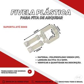 A fivela plástica é compatível com fitas de arquear de 13 a 16mm de largura, enquanto a cantoneira plástica pode ser utilizada com fitas de 10 a 20mm de largura. Ambas são fabricadas em polipropileno virgem pp , garantindo resistência e durabilidade.