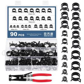 Funcionalidades Ótimo conjunto Este conjunto de grampos flexíveis é perfeito para todos os projetos e reparos que você fará em casa. Use todas as mangueiras novas ao instalar um motor em um de seus carros e, em seguida, instale linhas de combustível e vácuo para sua bicicleta de sujeira, soprador de neve. Alta qualidade Design de precisão de anel interno de 360°, altamente selado. Superfície polida suave, evita efetivamente danos ao tubo. Após a desidrogenação eficaz, não precisa se preocupar com ruptura e outros problemas após o uso prolongado. Uma variedade de opções de tamanho para atender a quase todas as suas necessidades Estes grampos de mangueira com mola estão disponíveis em vários tamanhos diferentes, que é a principal razão pela qual você gosta deste conjunto, porque você não sabe o tamanho que precisa ao substituir. Alicate de braçadeira de mangueira de junta giratória Estes alicates são longos o suficiente para permitir que você trabalhe em espaços apertados. Nossa braçadeira de mangueira pode entrar nesses espaços apertados e fazer o trabalho facilmente! Características do alicate de fixação Mandíbulas de bloqueio ajustáveis com segurança Aderência antiderrapante Feito de aço de alto carbono, revestido com revestimento protetor, anticorrosão e ferrugem Junta rotativa, flexível em uso Especificação Material: aço de mola (65MN) + aço carbono Cor: Preto Tamanho: 10 mm; 13 mm; 17 mm; 19 mm; 21 mm (Nota: os grampos de mola não têm força de aperto no estado natural. Precisa ser colocado no tamanho do anel interno maior do que um tubo redondo para produzir força de aperto) Lista de produtos 10 mm --- 20 peças 13 mm --- 20 peças 17 mm --- 15 peças 19 mm --- 20 peças 21 mm --- 15 peças 1 alicate de braçadeira de mangueira (22 cm/8,66 polegadas) Nota calorosa 1. As cores podem ter diferenças devido à exibição diferente, por favor, entenda. 2. Considere uma diferença de 1 a 2 mm devido à medição manual, certifique-se de que isso não se importa com isso antes de comprar. - ?O kit inclui? O kit contém 5 tamanhos de vários grampos de mola, incluindo 10 mm; 13 mm; 17 mm; 19 mm; 21 mm; cada tamanho é classificado e armazenado em uma caixa de plástico, e também vem com um alicate de braçadeira de mangueira adicional. Este conjunto de grampos pode atender às necessidades diárias básicas. - ?Alta qualidade? Braçadeira de mola feita de aço de mola 65MN, processo de revestimento Dacromet, forte e durável, resistente à corrosão em ambientes úmidos, pode ser armazenado por um longo tempo, altamente selado, suave e sem rebarbas, não arranhará o tubo quando utilizado. - ?Funcionalidade? Design de precisão do anel interno de 360 graus, evita efetivamente danos ao tubo. O grampo de mola pode garantir uma conexão confiável e à prova de vazamento entre a mangueira e o encaixe para evitar vazamento de fluido, ideal para fixar a conexão da mangueira ao encaixe. - ?Fácil de usar? Quando você precisa apertar, você só precisa pressionar as orelhas com força para aumentar o anel interno antes de colocar no tubo redondo e, em seguida, soltar, você pode fixar, mais conveniente de usar com alicates, pode ser utilizado repetidamente. - ?Ampla aplicação?Para fixação e vedação de juntas como mangueiras de combustível/vácuo/gás/ar/água/silicone, ideal para conexões de tubos em garagens, barcos, motocicletas, gramados e motores de carros.