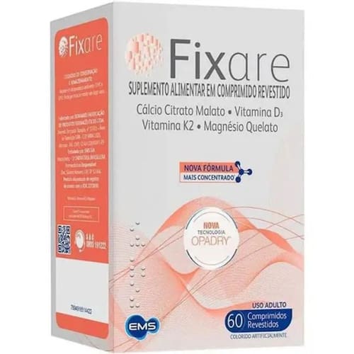 Fixare Suplemento Alimentar C/ 60 Comprimidos Revestidos Fixare com 60 comprimidos revestidos O que é: o suplemento vitamínico fixare c é composto por nutrientes essenciais como cálcio, vitamina d3 e vitamina k2 que desempenham um papel importante no desenvolvimento e na manutenção dos ossos.