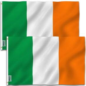 Pacote Anley com 2 bandeiras da Irlanda Fly Breeze de 3 x 5 pés — cores vivas e à prova de desbotamento — Cabeçalho de lona e costura dupla — Bandeiras nacionais irlandesas de poliéster com ilhós de latão de 3 x 5 pés