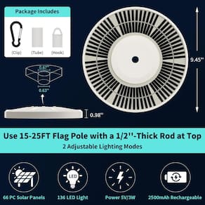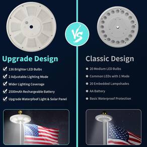 Memória atualizada. Aqui está uma descrição detalhada e envolvente do seu mastro de bandeira HOOPLE alimentado por energia solar (136 LED), projetada para atrair os consumidores americanos: Poste de luz solar HOOPLE – Ilumine sua bandeira com orgulho e brilho Adicione um toque de patriotismo à sua casa com o poste de luz solar HOOPLE Projetada para mastros que variam de 15 a 7,6 m, esta luz solar de alto desempenho garante que sua bandeira brilhe do anoitecer até o amanhecer, usando 136 LEDs ultrabrilhantes para criar uma tela radiante e multiangular que destaca sua bandeira da maneira mais patriótica possível. Se você está comemorando um feriado, homenageando um veterano ou apenas mostrando seu amor pelo seu país, esta luz movida a energia solar é a solução perfeita para iluminar sua bandeira durante a noite. Principais características: Energia solar eficiente com ligar/desligar automático. Alimentado inteiramente pelo sol, o poste de luz solar HOOPLE possui um painel solar eficiente que armazena energia durante todo o dia. Uma vez totalmente carregada, a luz acenderá automaticamente ao anoitecer e desligará ao amanhecer — sem necessidade de comutação manual. Desfrute de até 10 a 12 horas de iluminação contínua, alimentada por energia solar renovável, tornando-a ecológica e econômica. Dois modos de brilho para iluminação versátil Se você precisa de um brilho sutil ou um feixe intenso, a luz de mastro de bandeira HOOPLE oferece dois modos de brilho ajustáveis. O modo brilhante oferece iluminação máxima, garantindo que sua bandeira seja visível mesmo à distância. Os 136 LEDs da luz fornecem iluminação consistente e vibrante em ambos os modos, com o modo mais brilhante durando até 8 horas. Após um dia inteiro de luz solar, recarregará por mais 10 a 12 horas de uso. Estrutura durável e à prova de intempéries Construído para suportar os elementos, esta lanterna de mastro é classificada como IP65 para resistência à água, o que significa que continuará brilhando intensamente através da chuva, neve, vento e até mesmo nas condições climáticas mais adversas. Não importa onde você mora — seja em uma região costeira chuvosa, uma cidade montanhosa com neve ou uma área de planícies ventosas — esta luz solar foi projetada para durar. Perfeito para instalações ao ar livre, é ideal para o seu pátio, garagem, jardim, deck ou caminho. Fácil instalação – sem necessidade de ferramentas A instalação é fácil! O mastro de bandeira HOOPLE é projetado para caber na maioria dos mastros de bandeira padrão com uma haste de 1,27 cm de espessura. Basta remover a bola de enfeite na parte superior do mastro e parafusar a luz no lugar. O processo leva menos de um minuto, para que você possa aproveitar sua nova luz de bandeira quase imediatamente. Nenhuma ferramenta é necessária, o que a torna uma solução amigável para qualquer proprietário. Perfeito para veteranos, patriotas e entusiastas de bandeiras Procurando um presente significativo para alguém que ama a bandeira e demonstra orgulho em seu país? Esta luz de bandeira solar é um excelente presente para veteranos, famílias de militares ou qualquer pessoa que celebre o patriotismo. O mastro de bandeira HOOPLE é uma maneira atenciosa e prática de honrar sua bandeira e mostrar seu orgulho nacional. - Luz de mastro de bandeira solar: ilumine sua bandeira com fervor patriótico. A luz de bandeira solar HOOPLE com LEDs multiângulos garante que sua bandeira brilhe intensamente mesmo à noite. O pacote inclui 1 luz solar, 1 tubo, 1 gancho e 1 clipe. A bola de ornamento, a bandeira e o mastro não estão incluídos. - Painéis solares e ligar/desligar automaticamente: a luz do mastro da bandeira HOOPLE é alimentada por painéis solares que armazenam a energia do sol de forma mais eficiente. Isso permite que a luz solar dure por até 10 horas consistentemente do crepúsculo ao amanhecer. Para usar a luz, pressione o interruptor "ON" em qualquer um dos dois modos de iluminação. - Modos de iluminação de brilho: esta luz de mastro de bandeira alimentada por energia solar funciona em dois modos de brilho. O benefício legal é que todas as luzes LED permanecem acesas durante os dois modos. Modo mais brilhante com lúmen mais brilhante que dura até 8 horas. Depois de ser recarregada durante um dia ensolarado, funcionará por até 10 a 12 horas. - Impermeável e durável: o mastro de bandeira solar HOOPLE pode suportar anos de chuva, neve, gelo e vento com grau de resistência à água IP65. Nossa luz de bandeira é perfeita para pátios, decks, caminhos, escadas, calçadas, jardim, etc. E nossa luz de mastro de bandeira alimentada por energia solar pode ser usada como luzes de acampamento, piscina, jardim e beirais. - Serve para mastro de bandeira de 15 a 75 pés: a luz da bandeira HOOPLE é projetada para caber no mastro padrão de 4,6 a 7,6 m com uma haste de meia polegada (1/5.1 cm) de espessura na parte superior. A instalação pode ser feita em um minuto. Não são necessárias ferramentas. Todas as nossas luzes solares de mastro de bandeira são super fáceis de instalar. Basta desparafusar o enfeite superior e parafusar nossa luz em seu lugar! É o presente perfeito para veteranos e patriotas que sangram vermelho, branco e azul! - La lámpara solar para bandera carga durante el día y proporciona iluminação LED automática por la noche, sin cables ni baterías. É resistente a la intemperie, ideal para exteriores e uso contínuo. Se instala facilmente en postes estándar y requiere mínimo mantenimiento gracias a su tecnología solar.