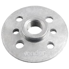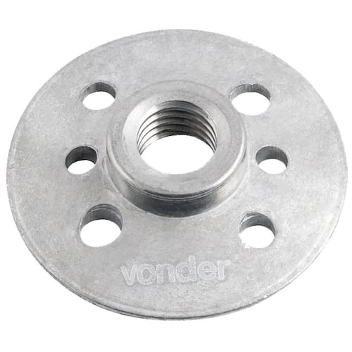 Descrição do Produto: 1 Flange adaptadora Indicada para lixadeiras angulares e esmerilhadeiras angulares de 4 ½ - Tipo de rosca da flange: M14 - Material: Aço carbono zincado - Diâmetro da flange: 53 mm - Altura da flange: 16 mm - Distância entre furos: 30 mm