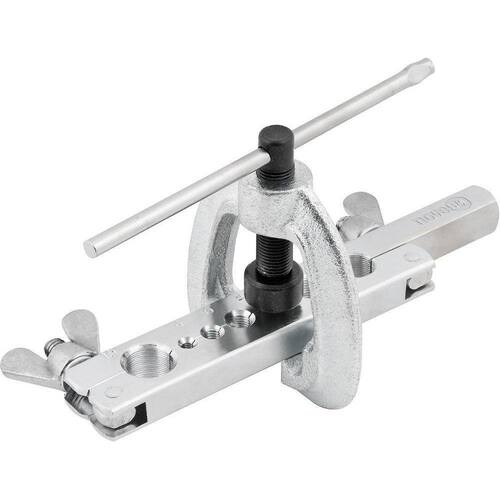 Conteúdo da embalagem1 FlangeadorAplicações e dicas de usoIndicado para flangear tubos macios de cobre e alumínio de 4 mm a 16 mmDestaques e diferenciaisPossui acabamento cromado, proporcionando maior resistência à corrosão/oxidação DETALHES TÉCNICOS Comprimento total do flangeador para tubos: 180,0 mm Material do flangeador para tubos: Aço cromado Capacidade do flangeador para tubos com diâmetro: 3/16, 1/4, 5/16, 3/8, 7/16, 1/2 e 5/8 - 4 mm, 6 mm, 8 mm, 10 mm, 12 mm, 14 mm e 16 mm Ean: 7893946467951